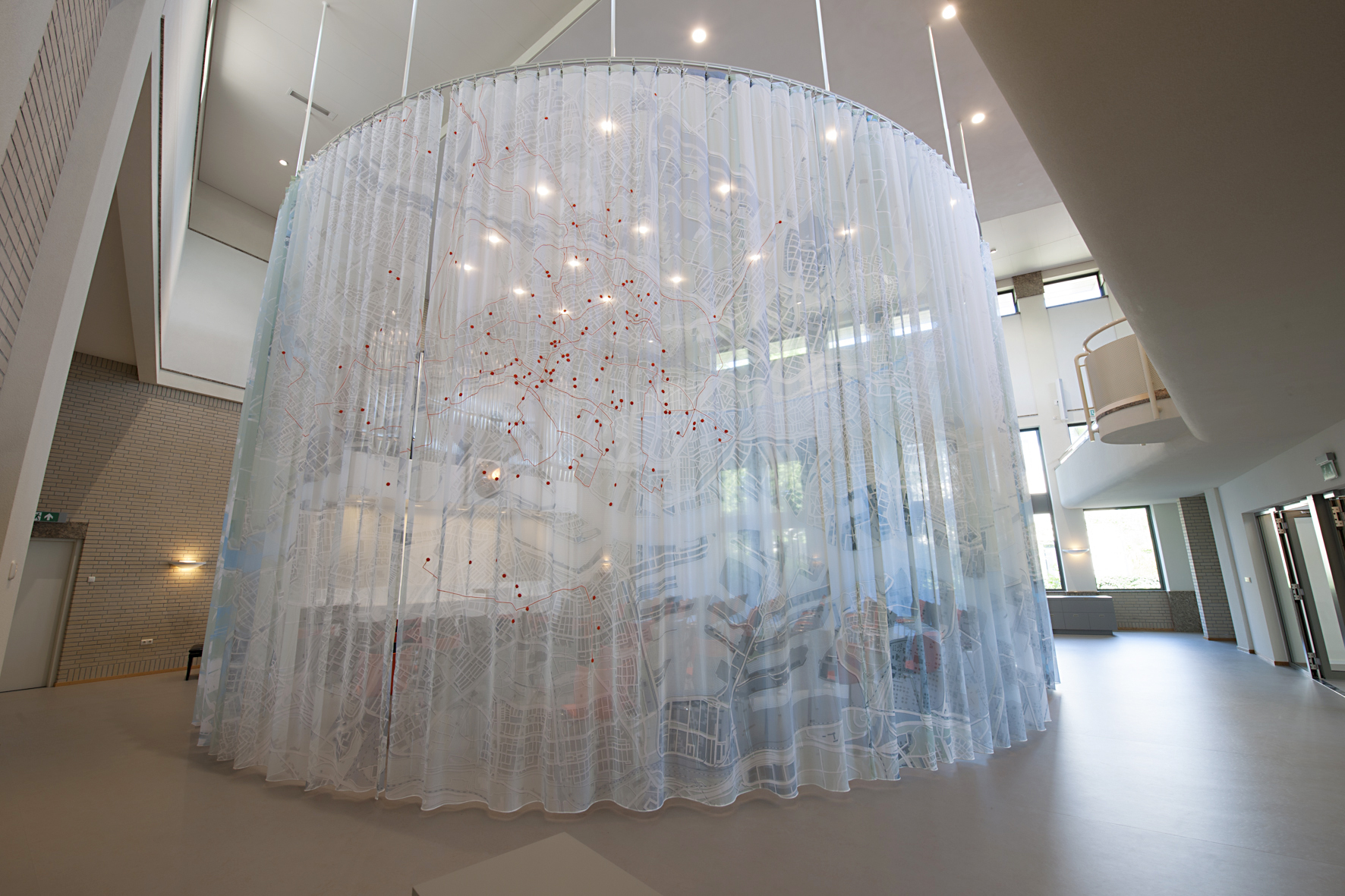The routes connected to the stories of the members of the Apostolic Society Prinsenland were embroidered on the map of Rotterdam.