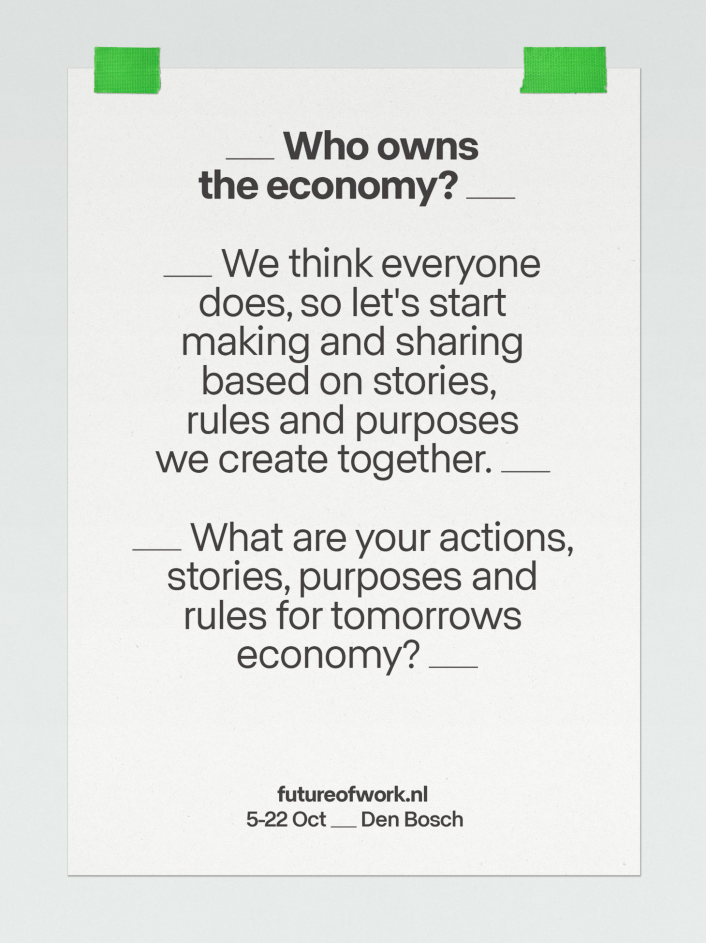 What exactly is this elusive and all-determining ‘economy’? And what kind of economy do we desire? These questions were at the heart of the festival ‘Who owns the Economy?’, which brought together participants and visitors to explore the future of our economic system. The multidisciplinary exhibition and public programming served as an invitation for everyone to engage and envision the economy of tomorrow.